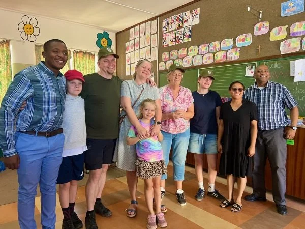 Besøg til en af de lokale skoler for at donere vildtkød fra safarien til skolekøkkenet. Skolens rektor vil ofte vise rundt på skolen og man vil som gæst kunne opleve hvordan undervisningen foregår.